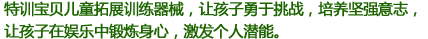 滄州華北特訓(xùn)器械有限公司成立于2002年,是專(zhuān)業(yè)研發(fā)生產(chǎn)心理行為訓(xùn)練器械、拓展器械、拓展器材、攀巖、兒童拓展器械的專(zhuān)業(yè)型企業(yè),并通過(guò)ISO-9001質(zhì)量管理體系認(rèn)證及ISO-14001環(huán)境管理體系認(rèn)證,致力于各職業(yè)群體提供的心理行為訓(xùn)練器械、拓展器械、攀巖、兒童拓展器械等設(shè)備,使之不斷提升心理健康水平、充分開(kāi)發(fā)自我潛能。我公司竭誠(chéng)為廣大客戶(hù)提供專(zhuān)業(yè)化各類(lèi)心理行為訓(xùn)練器械相關(guān)產(chǎn)品和服務(wù)。